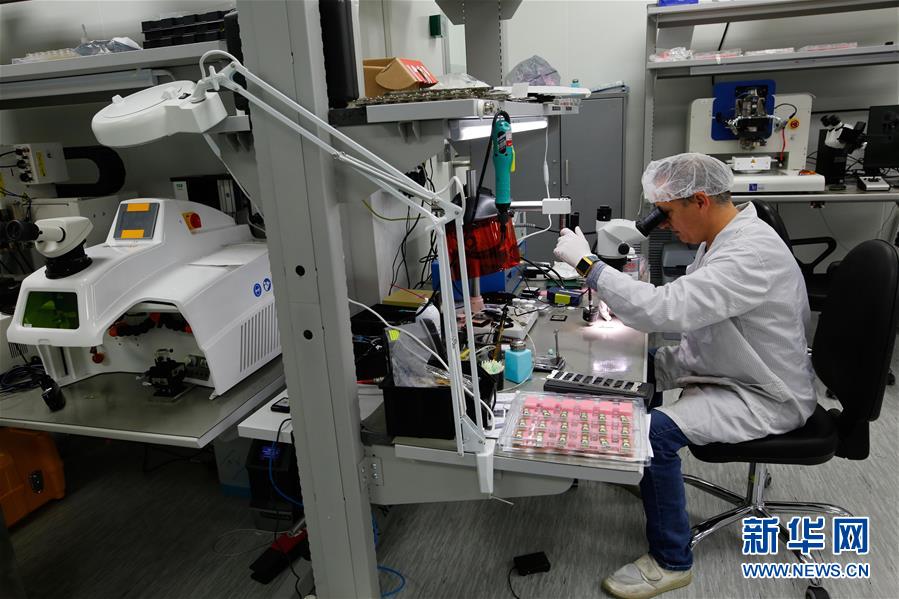 4月17日,在位于以色列北部城市约克尼穆的迈络思公司,一名技术人员在无尘室内工作。2019年3月,美国芯片制造商英伟达以69亿美元的价格收购以色列芯片企业迈络思。新华社发(吉尔·科恩·马根 摄)