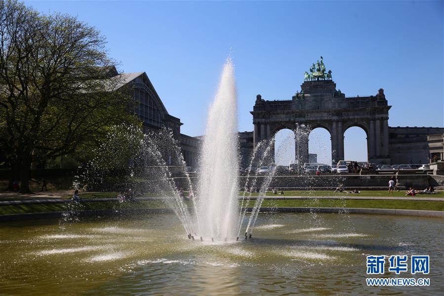 4月19日,人们在比利时布鲁塞尔的五十周年纪念公园游玩、休息。
