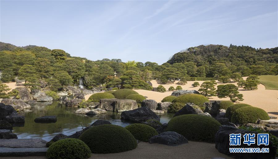 这是4月18日在日本岛根足立美术馆拍摄的日本庭院“白砂青松园”区域,该区域的景色再现日本画家横山大观的《白砂青松》画作。 新华社记者 杜潇逸 摄