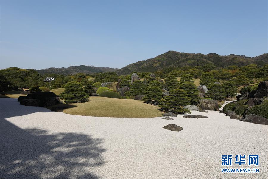 这是4月18日在日本岛根足立美术馆拍摄的日本庭院“枯山水园”区域。日本庭院多用砂石制造出流水的效果。 新华社记者 杜潇逸 摄