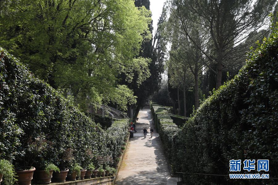 2019年4月17日,在意大利蒂沃利,人们在埃斯特庄园中游览。埃斯特庄园位于意大利蒂沃利,面积约4.5公顷,是文艺复兴时期的文化艺术成果之一。埃斯特庄园是典型的意大利台地园,主建筑物在高地边缘,后面的园林建在陡峭的山坡上。2001年,埃斯特庄园被列入世界文化遗产。新华社记者程婷婷摄
