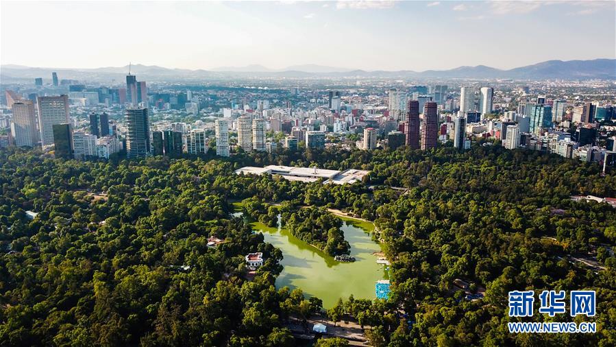 这是2019年4月18日在墨西哥首都墨西哥城用无人机拍摄的查普特佩克森林公园内的湖泊。该公园坐落在查普特佩克山顶,这里海拔两千米以上,曾是阿兹特克文明的圣地,后被西班牙殖民者占领并在此修建城堡。目前公园占地约686公顷,是拉丁美洲最大的城市公园之一。公园不仅保留着西班牙殖民者修建的城堡,还拥有数座在拉美有重要影响力的博物馆和美术馆,是墨西哥城重要的城市绿肺和著名的文化中心。新华社记者辛悦卫摄