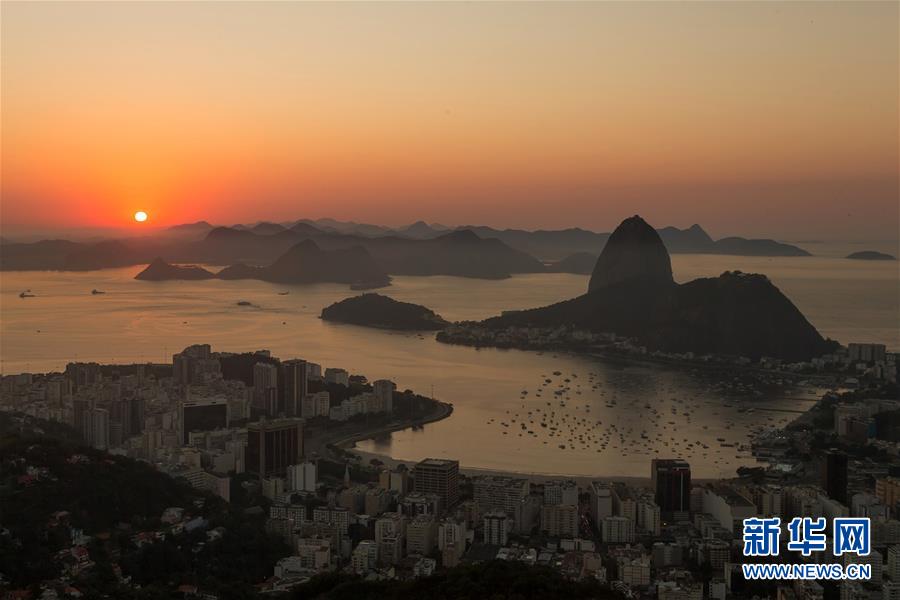 这是2015年8月7日在巴西里约热内卢拍摄的日出时分的瓜纳巴拉湾和面包山。 新华社记者徐子鉴摄