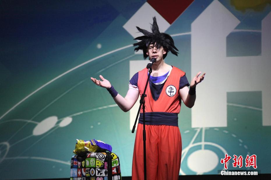 当地时间4月21日,一位自媒体“网红”在加拿大多伦多举办的首届国际动漫粉丝节上以cosplay(角色扮演)形式登台表演。此次国际动漫粉丝节恰逢复活节假期,吸引不少动漫迷参加。 中新社记者 余瑞冬 摄
