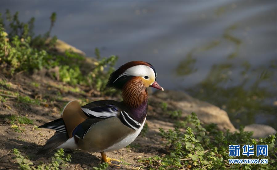 这是4月14日拍摄的英国伦敦邱园(英国皇家植物园)内的鸳鸯。 新华社记者韩岩摄