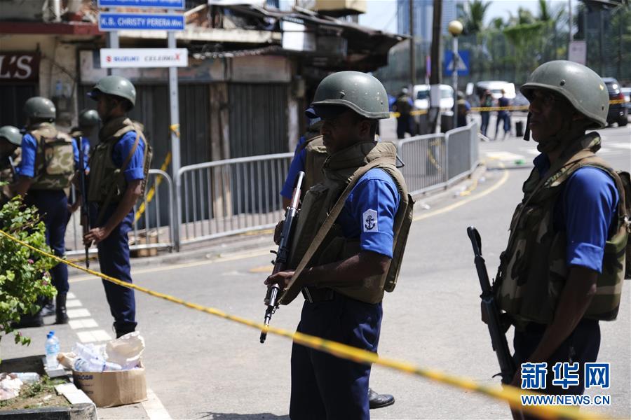 4月22日,在斯里兰卡首都科伦坡,持枪军警在发生爆炸的圣安东尼教堂外加强警戒。新华社发(王申摄)