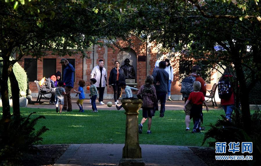 4月21日,在美国旧金山的金门公园,游客在莎士比亚花园里玩耍。新华社记者 吴晓凌 摄
