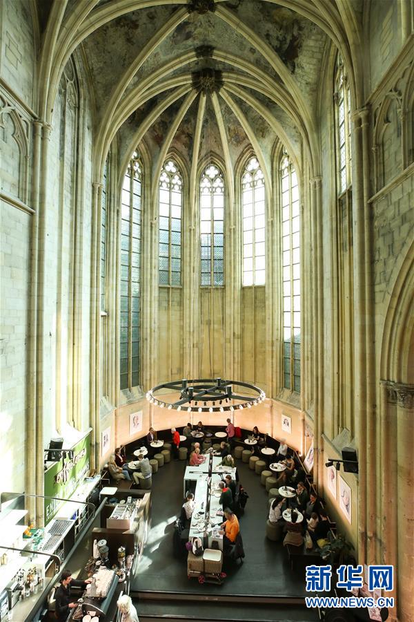 这是4月16日拍摄的荷兰马斯特里赫特多米尼加书店餐饮区。 多米尼加书店位于荷兰马斯特里赫特市中心,前身是拥有近800年历史的多米尼加教堂,由荷兰建筑师重新设计改造完成。整个书店将现代元素与哥特式建筑风格相结合,不仅保持了多米尼加教堂的历史古貌,也给现代人带来一个恬静的读书场所,被游客称为“天堂书店”。 新华社记者 张铖 摄