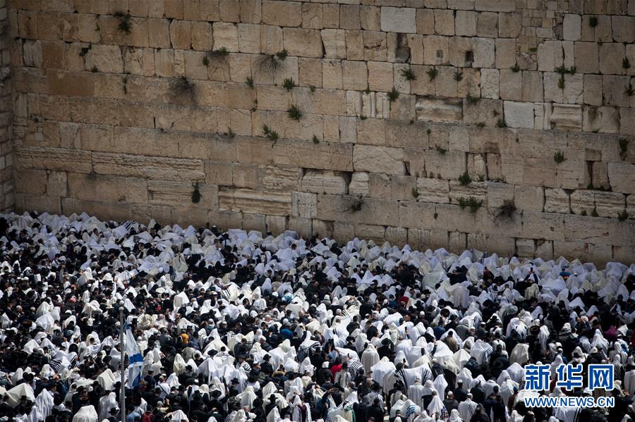 4月22日,在耶路撒冷老城的犹太教圣地“哭墙”前,犹太人进行逾越节祷告。