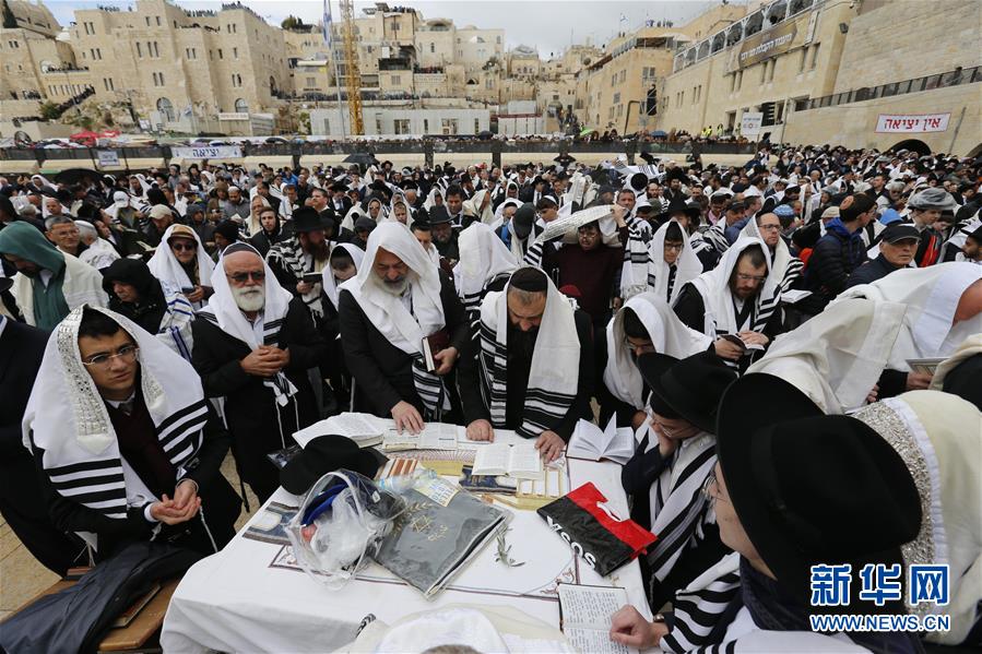 4月22日,在耶路撒冷老城的犹太教圣地“哭墙”前,犹太人进行逾越节祷告。