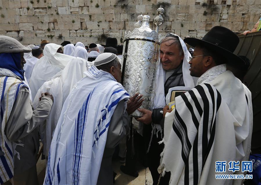 4月22日,在耶路撒冷老城的犹太教圣地“哭墙”前,犹太人进行逾越节祷告。
