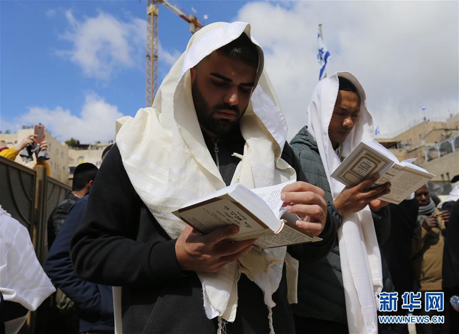4月22日,在耶路撒冷老城的犹太教圣地“哭墙”前,犹太人进行逾越节祷告。
