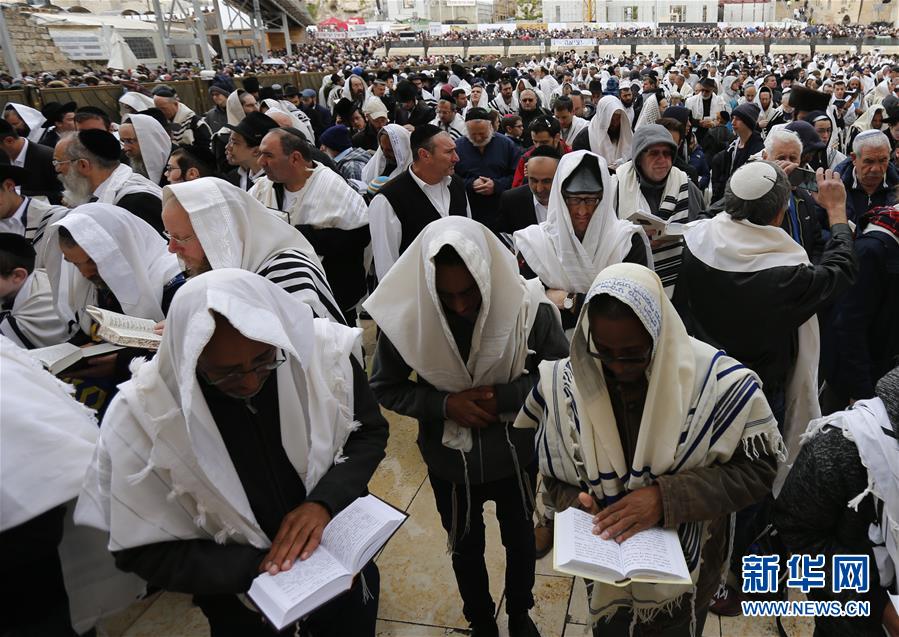 4月22日,在耶路撒冷老城的犹太教圣地“哭墙”前,犹太人进行逾越节祷告。