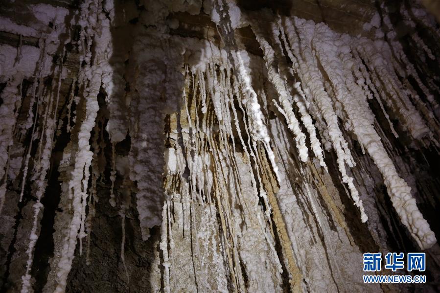 这是4月14日在位于死海南端的以色列迈勒海姆盐洞内拍摄的盐钟乳石。 以色列洞穴研究专家近日宣布,他们与来自其他国家的洞穴探索者合作勘查发现,位于死海地区的以色列迈勒海姆洞长10公里,是世界上最长的盐洞。这个盐洞最初由以色列希伯来大学洞穴研究中心专家上世纪80年代在绵延11公里的塞多姆山里发现。塞多姆山位于死海西南端,比海平面低170米。山体几乎全部由盐构成,只覆盖薄薄一层岩石。每年冬季,雨水渗入山石缝隙,溶解盐分,不断形成新的洞穴。 新华社发(吉尔·科恩·马根 摄)