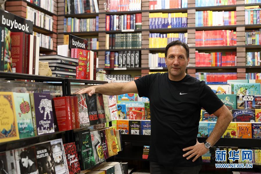 4月22日,在波黑首都萨拉热窝,老板达米尔站在得书书屋内。春日的波黑首都萨拉热窝,花草树木展现勃勃生机。仿佛呼应缤纷的大自然,毗邻米利亚茨卡河的得书书屋也努力展现着人类多彩的精神世界。100余平方米的书屋里,书籍琳琅满目。新华社发(內迪姆⋅格拉博维察摄)