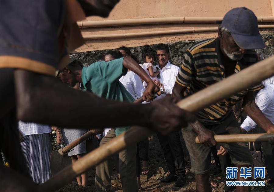4月24日,在斯里兰卡科伦坡一处墓地,亲属与遇难者遗体告别。 斯里兰卡警方24日说,该国21日发生的连环爆炸袭击已经造成359人身亡、超过500人受伤。 新华社发(王申摄)