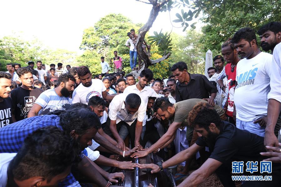 4月24日,在斯里兰卡科伦坡一处墓地,亲属与遇难者遗体告别。 斯里兰卡警方24日说,该国21日发生的连环爆炸袭击已经造成359人身亡、超过500人受伤。 新华社发(王申摄)