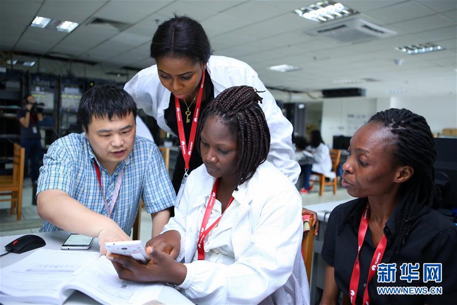 2016年4月21日,来自尼日利亚的学生在华为未来种子项目实验室学习ICT(信息与通信技术)技术。 未来种子项目邀请来自全球各地的优秀大学生来到华为总部参观和学习,并使全球上万名学生从中受益。 新华社发