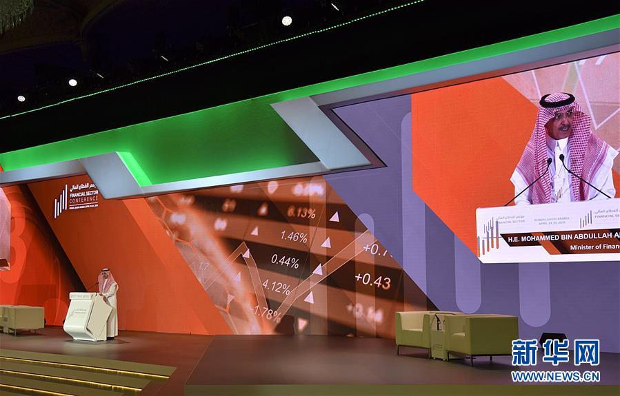 4月24日,在沙特阿拉伯利雅得,沙特财政大臣穆罕默德·贾丹在沙特金融行业会议开幕式上致辞。 沙特阿拉伯财政大臣穆罕默德·贾丹24日说,沙特今年第一季度实现预算盈余278亿里亚尔(约合74.1亿美元),这是沙特自2014年以来首次实现季度预算盈余。 新华社记者 涂一帆 摄