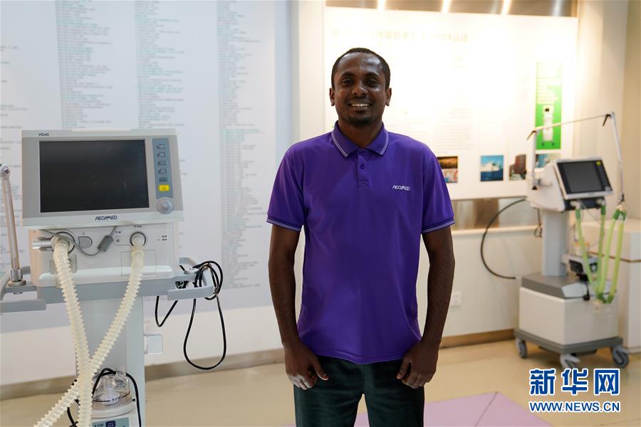 4月4日,来自苏丹的奥马尔在他工作的北京谊安医疗系统股份有限公司的产品展示厅内。奥马尔今年30岁,2014年来到北京理工大学读自动化专业的研究生。2017年4月,他通过中关村一带一路产业促进会的“藤蔓计划”来到谊安医疗实习,并在毕业后担任公司中东地区的产品售后工程师。“我已经习惯了中国的生活,中国是一个开放的国家,我在这里认识了很多人,不同文化背景的,不仅仅是中国人。” 奥马尔说以后要回到苏丹工作,不过在中国的经历让他受益匪浅。“在中国的经历能让我带一些不一样的东西回去。在苏丹有很多中国公司,不同行业不同领域的,这对我是一种机遇,我可以回去跟这些企业合作,在中国的经历对我来说都是有帮助的。” 新华社记者鞠焕宗摄