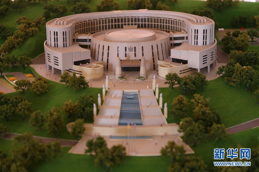 这是4月8日在津巴布韦首都哈拉雷以西20公里的汉普登山新城拍摄的津巴布韦新议会大厦模型。据施工方介绍,新议会大厦采用“中津合璧”的风格——项目的外观选用大津巴布韦遗址和津巴布韦国鸟等元素;而内部装饰则突出中国元素。 近年来,中津两国在维多利亚瀑布城机场改造升级、卡里巴南岸水电站扩容等项目上进行了深度合作,结出累累硕果,为津巴布韦实现能源自给、发展旅游业提供了强大助力。去年4月开始,中津关系提升为全面战略合作伙伴关系。一年来,两国在基础设施建设领域的合作不断深入,包括津巴布韦新议会大厦、万盖燃煤电站扩机工程、罗伯特·穆加贝机场扩建工程等多个重大项目相继开工建设,“中津合璧”正在谱写新的篇章。 新华社发(陈雅琴摄)