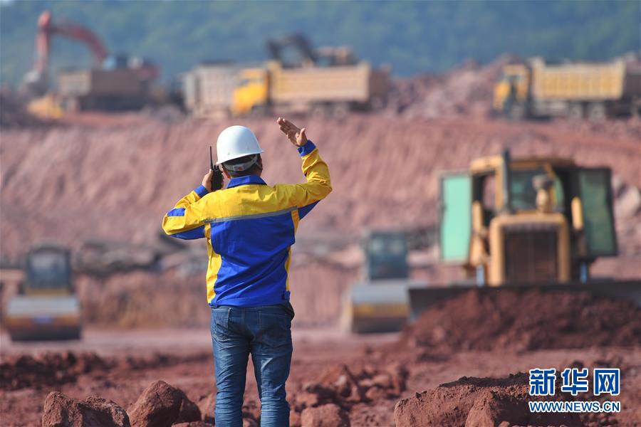 普洱车站施工现场,中铁八局的工人在指挥压路机碾压路面(4月12日摄)。新华社记者 秦晴 摄