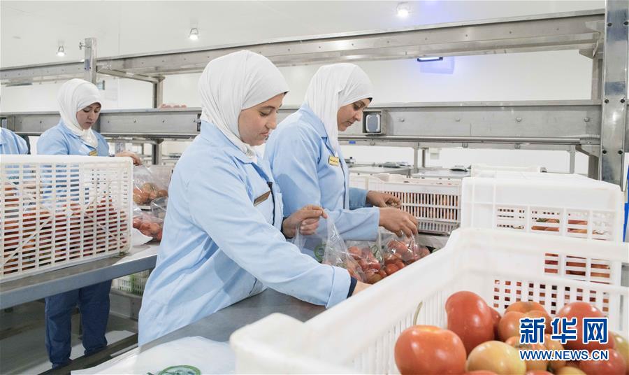 3月25日,在埃及首都开罗东北约90公里的斋月十日城,工人在分拣包装仓储站内工作。2016年,埃及总统塞西提出,要在埃及大力发展现代化农业,实现规模化温室果蔬种植。2017年5月,拥有先进技术的中国国机重工与埃方签署合同。同年10月,包括温室大棚、服务区和分拣包装仓储设施的斋月十日城地块项目正式开工,来自国机重工和温室大棚生产企业的中国技术人员进入施工现场,指导当地员工安装温室大棚。自此,这里的大片荒漠逐渐成为现代化农业生产基地。 新华社记者 邬惠我 摄
