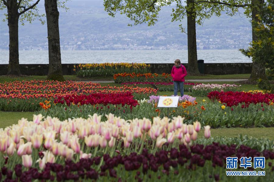 4月28日,在瑞士莱蒙湖畔小镇莫尔日,一名参观者在郁金香节上赏花。 今年的莫尔日郁金香节共展出约300个品种超过12万株郁金香,色彩绚丽的花卉为春日里的湖畔小城增添了不少浪漫气息。 新华社记者 徐金泉 摄