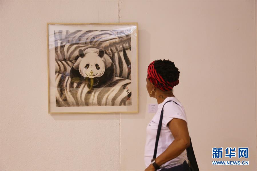 4月29日,在津巴布韦首都哈拉雷的国家艺术馆,观众在欣赏艺术作品。 第二届“一带一路”非中艺术交流展29日在津巴布韦首都哈拉雷的国家艺术馆拉开帷幕,展出来自10多个非洲国家和中国的艺术家创作的120多幅作品。 新华社发(陈雅琴摄)