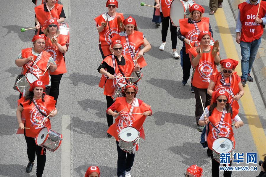 5月1日,在土耳其安卡拉,人们参加“五一”游行,庆祝“五一”国际劳动节。 新华社发(穆斯塔法·卡亚摄)