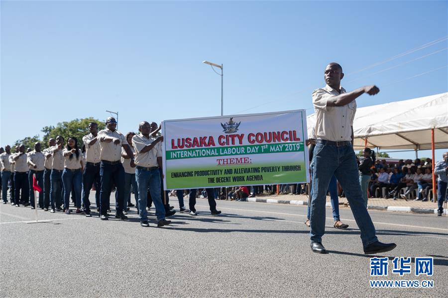 5月1日,在赞比亚卢萨卡,卢萨卡市政局游行方队在街头行进。 当天上午,赞比亚政府部门、企业公司及数千民众在卢萨卡参加游行活动, 庆祝“五一”国际劳动节。 新华社记者彭立军摄