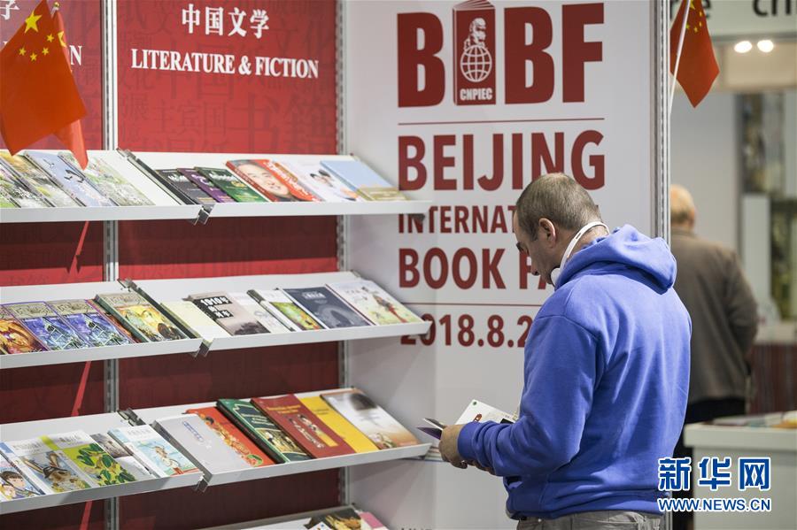 5月1日,在瑞士日内瓦,参观者在中国展台看书。 为期5天的第33届日内瓦书展1日开幕。 新华社记者 徐金泉 摄