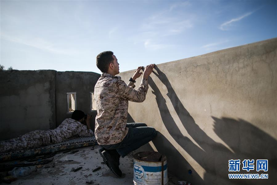 5月2日,在利比亚首都的黎波里南部,民族团结政府军队成员观察“国民军”武装动向。