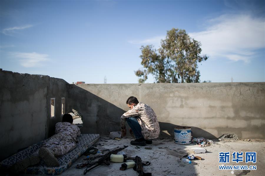5月2日,在利比亚首都的黎波里南部,民族团结政府军队成员观察“国民军”武装动向。