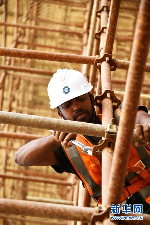 5月2日,在孟加拉国首都达卡,一名工人在孟中友谊展览中心工地工作。