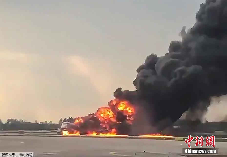 俄罗斯一客机紧急迫降 停稳后部分已被火焰吞没