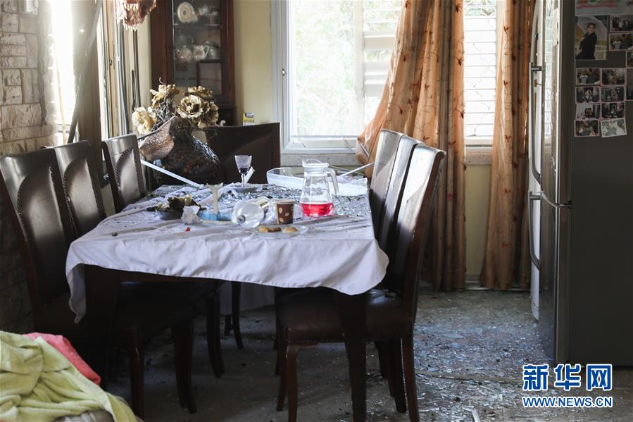 这是5月5日在以色列阿什凯隆拍摄的遭巴方火箭弹袭击损毁的房屋内景。 加沙地带巴勒斯坦武装组织与以色列军队冲突5日继续升级。冲突导致20多人丧生、逾200人受伤。 新华社/基尼图片社