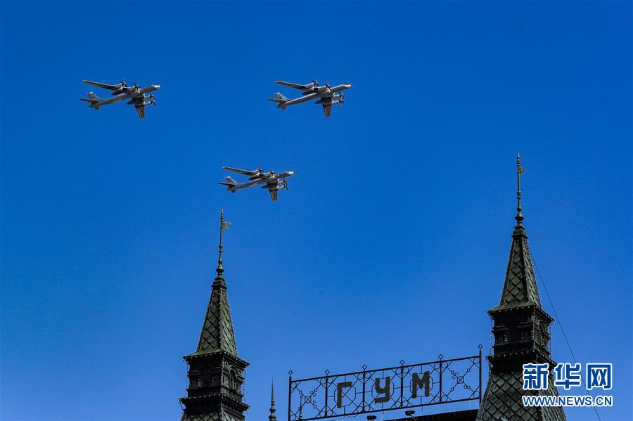 5月7日,在俄罗斯首都莫斯科,图-95MS战略轰炸机编队参加阅兵彩排。 当天,莫斯科红场举行胜利日阅兵式彩排,完整演练9日阅兵全过程。5月9日是俄罗斯卫国战争胜利日,莫斯科红场阅兵仪式是当天的主要庆祝活动。 新华社记者 白雪骐 摄