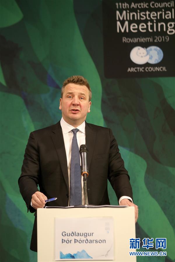 5月7日,在芬兰北部城市罗瓦涅米,冰岛外长索尔达松在记者会上回答提问。 第11届北极理事会部长级会议7日在芬兰北部城市罗瓦涅米结束。由于美国的反对,本届会议未能发表共同宣言,这是北极理事会23年历史上首次出现这种情况。 新华社记者 李骥志 摄