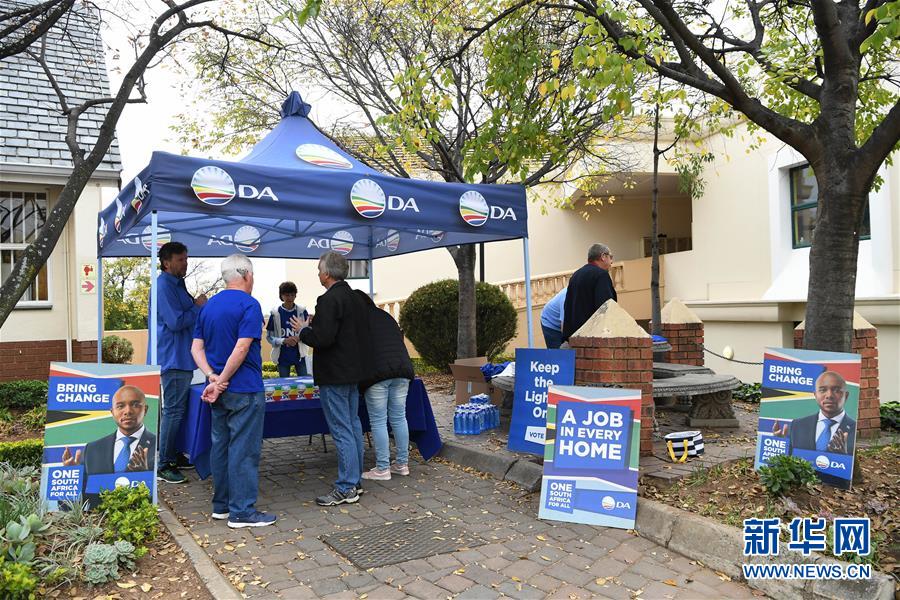 5月8日,在南非约翰内斯堡一处投票点外,反对党民主联盟的工作人员协助选举投票工作。 南非8日迎来结束种族隔离政策后的第六次大选。当天,全国约2.3万个投票站将从早晨7时到晚上9时向选民开放。投票结束后,计票工作随即展开,预计选举结果将在11日公布。 新华社记者陈诚摄