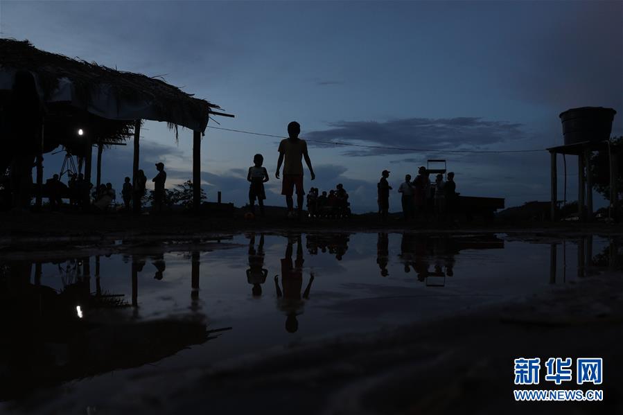 4月4日,在巴西马托格罗索州南部的雅鲁多里社区,当地孩子在水坑旁玩耍。 新华社记者李明摄