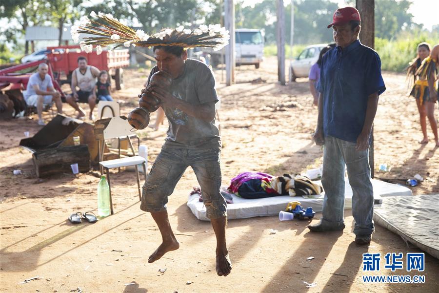 4月5日,在巴西马托格罗索州南部的雅鲁多里社区,一名原住民参加当地为孩子命名的仪式。 新华社记者李明摄
