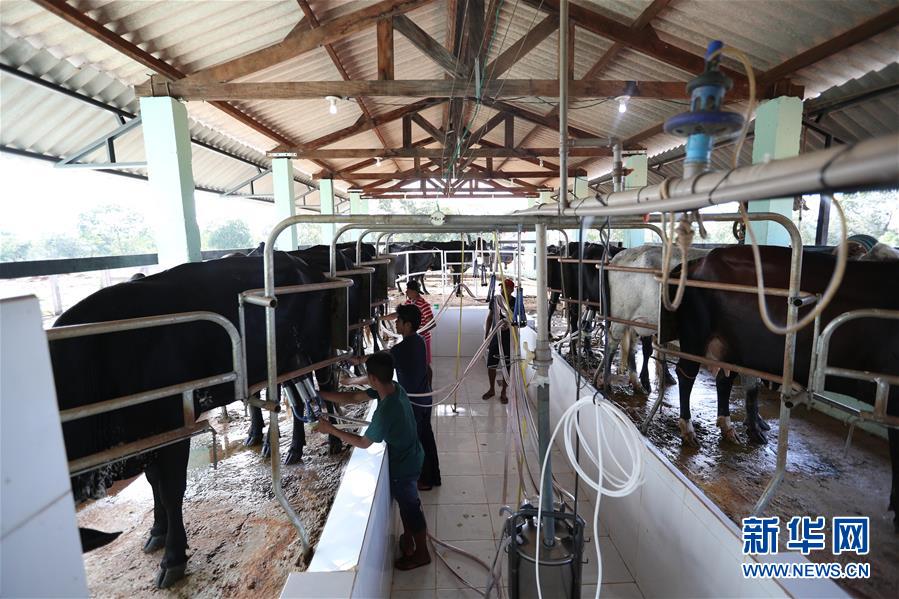 4月5日,在巴西马托格罗索州南部的雅鲁多里社区,当地居民在牛奶加工厂内挤牛奶。 新华社记者李明摄