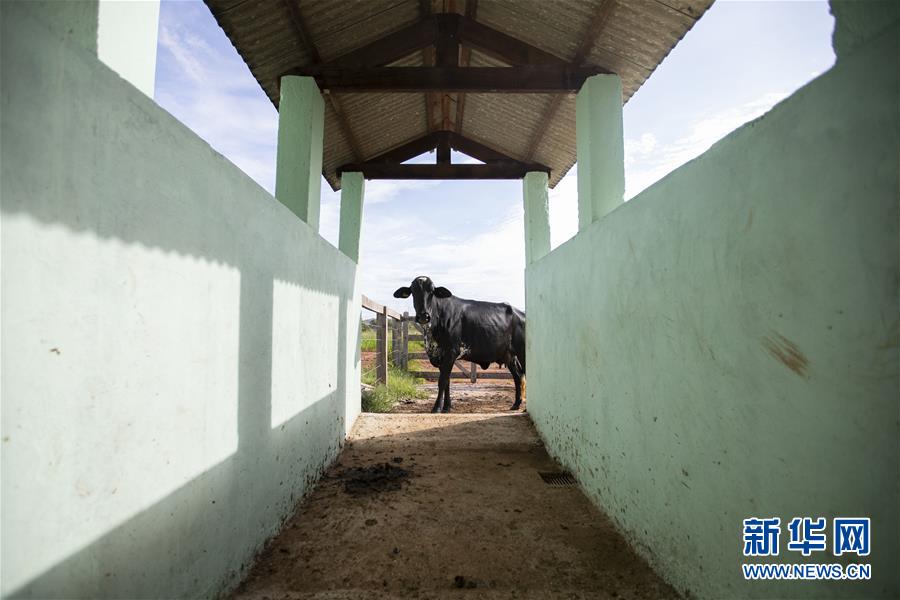 这是4月5日在巴西马托格罗索州南部的雅鲁多里社区牛奶加工厂内拍摄的一头奶牛。 新华社记者李明摄