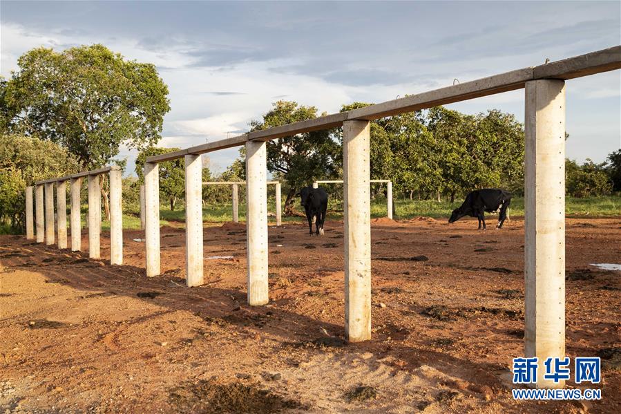 这是4月4日在巴西马托格罗索州南部的雅鲁多里社区养牛场内拍摄的中国企业捐赠的奶牛。 新华社记者李明摄