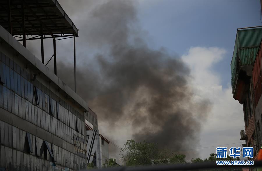 5月8日,在阿富汗首都喀布尔,爆炸现场冒出的浓烟。阿富汗政府官员8日说,塔利班武装分子当天在阿首都喀布尔的一个国际援助机构大楼外发动自杀式汽车炸弹袭击,导致至少1名袭击者死亡、9人受伤。新华社发(拉赫马特·阿里扎达摄)