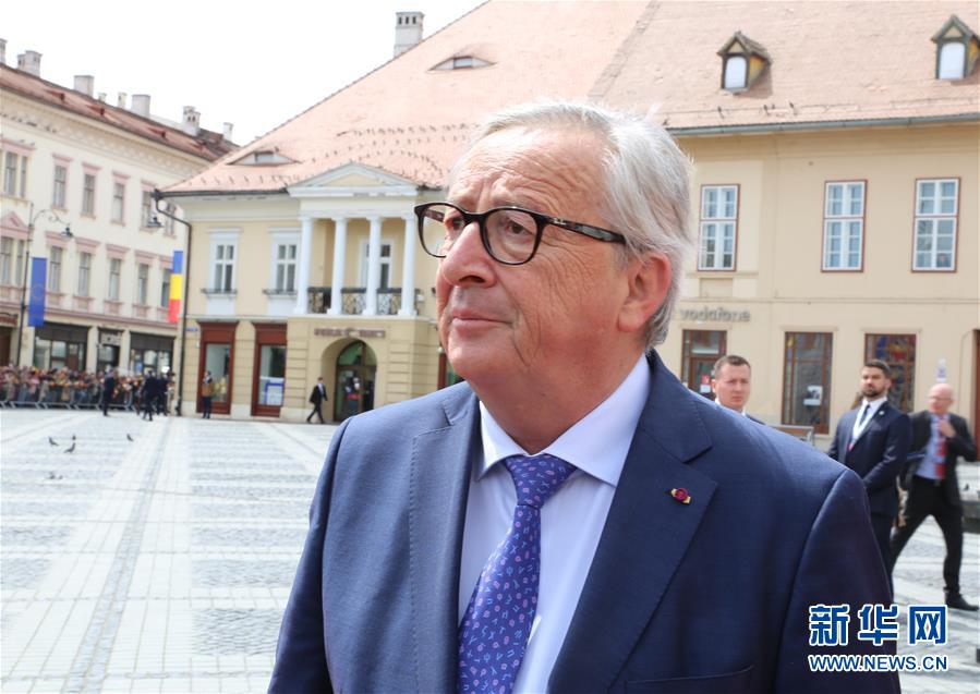5月9日,在罗马尼亚锡比乌,欧盟委员会主席容克抵达会场。新华社记者 陈进 摄