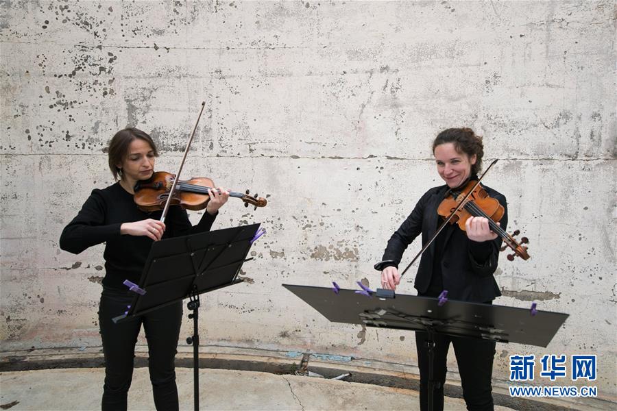 5月8日,在澳大利亚堪培拉的斯特罗姆洛山天文台,两位小提琴家进行表演。