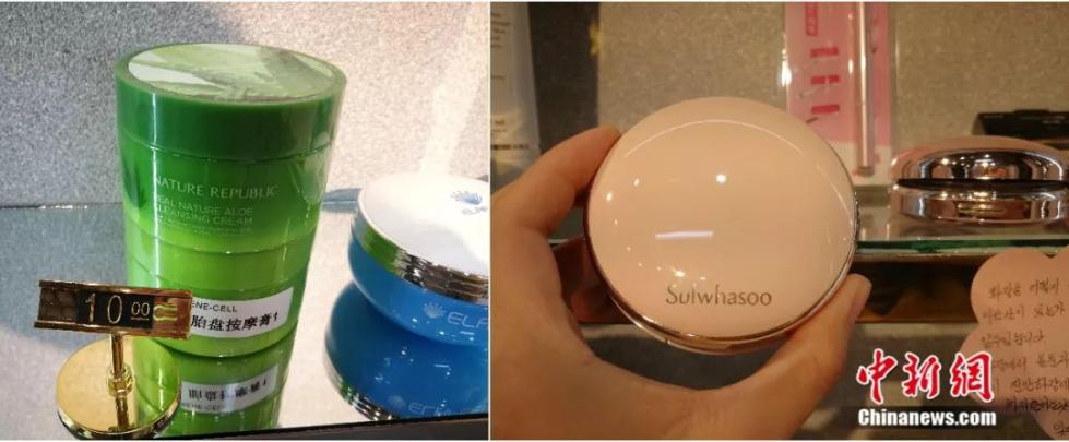 图为在朝鲜销售的韩国化妆品,左边售价10美元,右边售价60美元。中新网记者 邱宇 摄