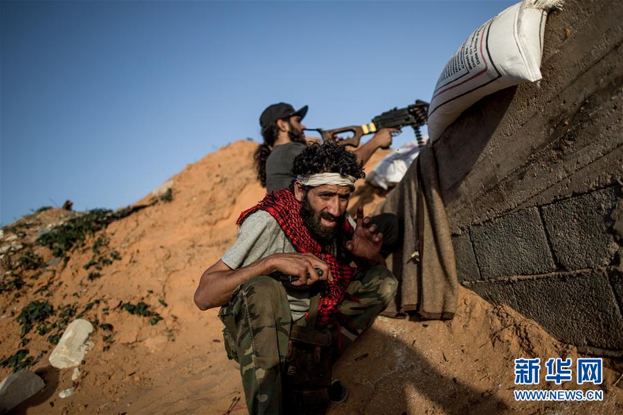 5月9日,在利比亚首都的黎波里,一名支持利比亚民族团结政府的武装人员向“国民军”开火。4月初,控制利比亚东部的“国民军”对的黎波里发起军事行动,与控制该市的民族团结政府军队交战。新华社发(阿姆鲁摄)